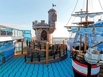 • otevřený bazén na horní palubě, 1 bazén s posuvnou prosklenou střechou, bazén pro děti