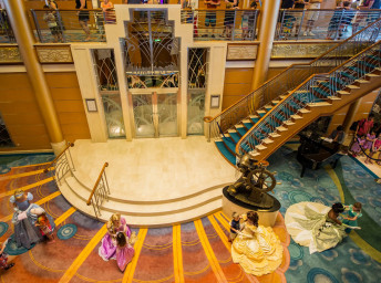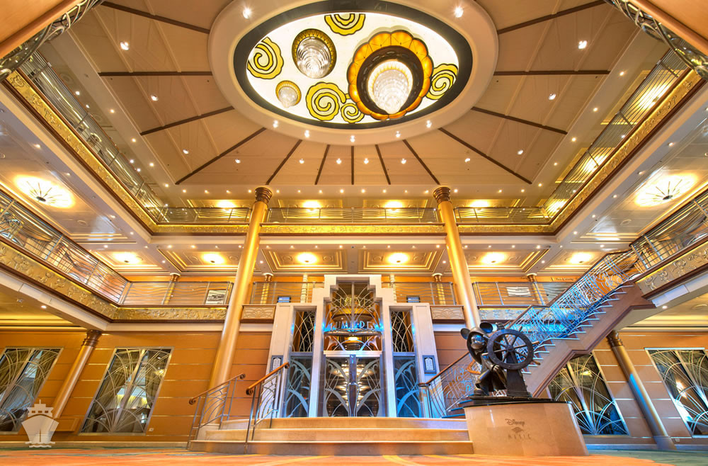• Magic 's Atrium (centrální část lodi, přes 3 paluby, s bronzovou sochou "Helmsman Mickey")