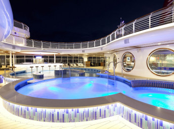 Zařízení kajut: dvoulůžková queen postel (matrace Posturepedic Sealy, ložní prádlo z egyptské bavlny), skříň, koupelna se sprchou, vanou a WC, vysoušeč vlasů, kosmetika H20 + spa (šampon, kondicionér a tělové máslo), obývací část se sofa a stolkem, oddělitelná závěsem, 22 palcová plochá Tv, bezpečnostní schránka, telefon s přímou linkou, zrcadlo, regulovatelná klimatizace.