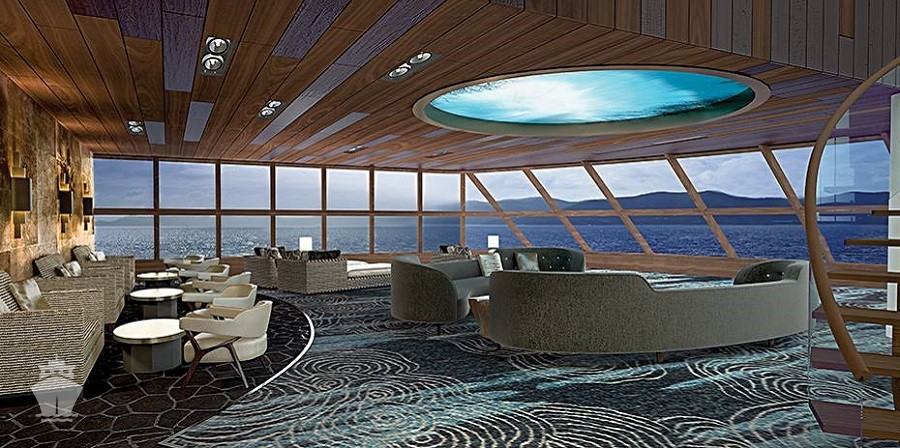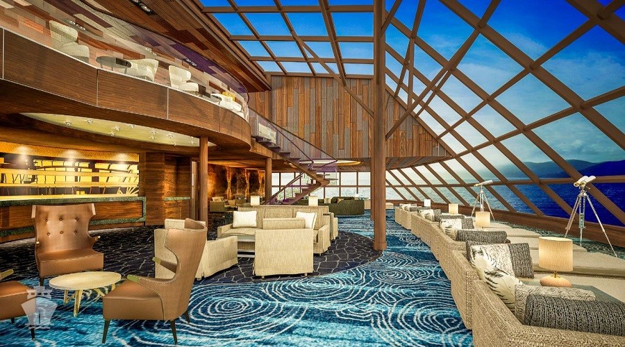• Spinnaker Lounge – panoramatický salonek na přídi s výhledem na moře