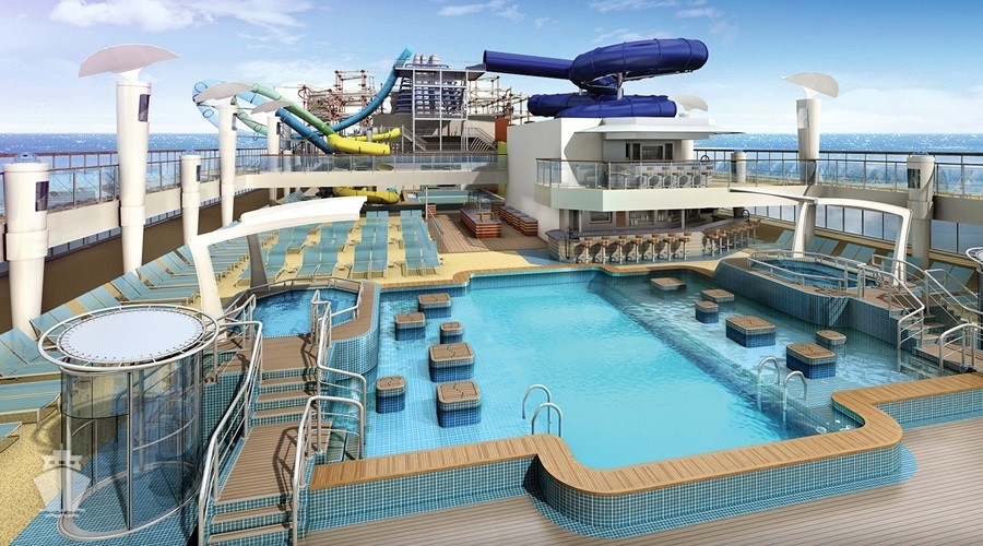 • Venkovní bary u bazénu, včetně zóny pro dospělé: Topsiders, Waves Pool Bar, Great Outdoors Bar, Spice H₂O, Vibe Beach Club