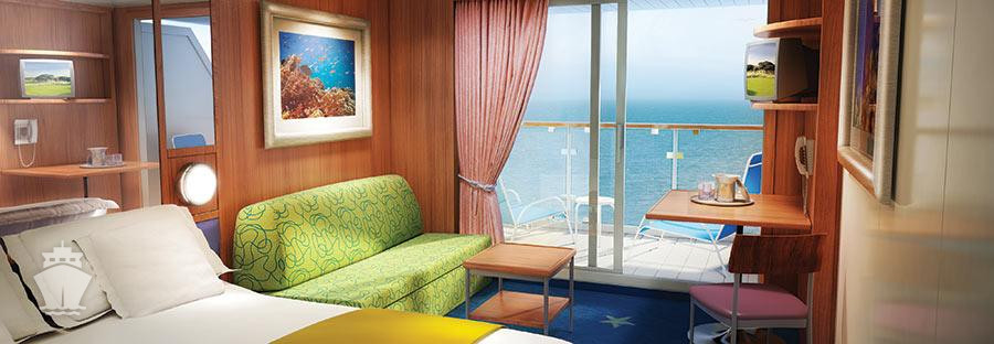 Kajuta s balkónem: cca 19 m². Možnost 1 - 2 přistýlek v podobě rozkládacího sofa.