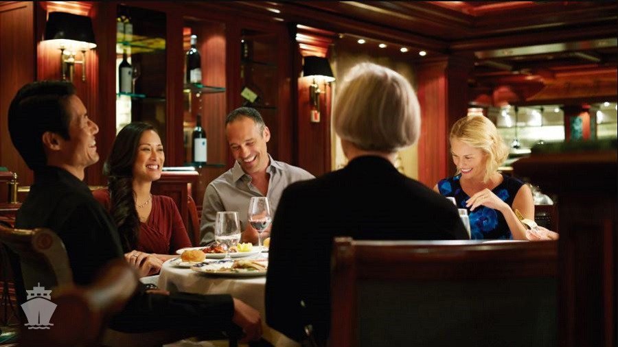 Stravování ve speciálních restauracích a zařízeních je za příplatek: například steakhouse Crown Grill, italská trattorie Sabatini’s, gourmetské restaurace The Chef’s Table nebo Chef’s Table Lumiere, italská zmrzlina Gelato aj.