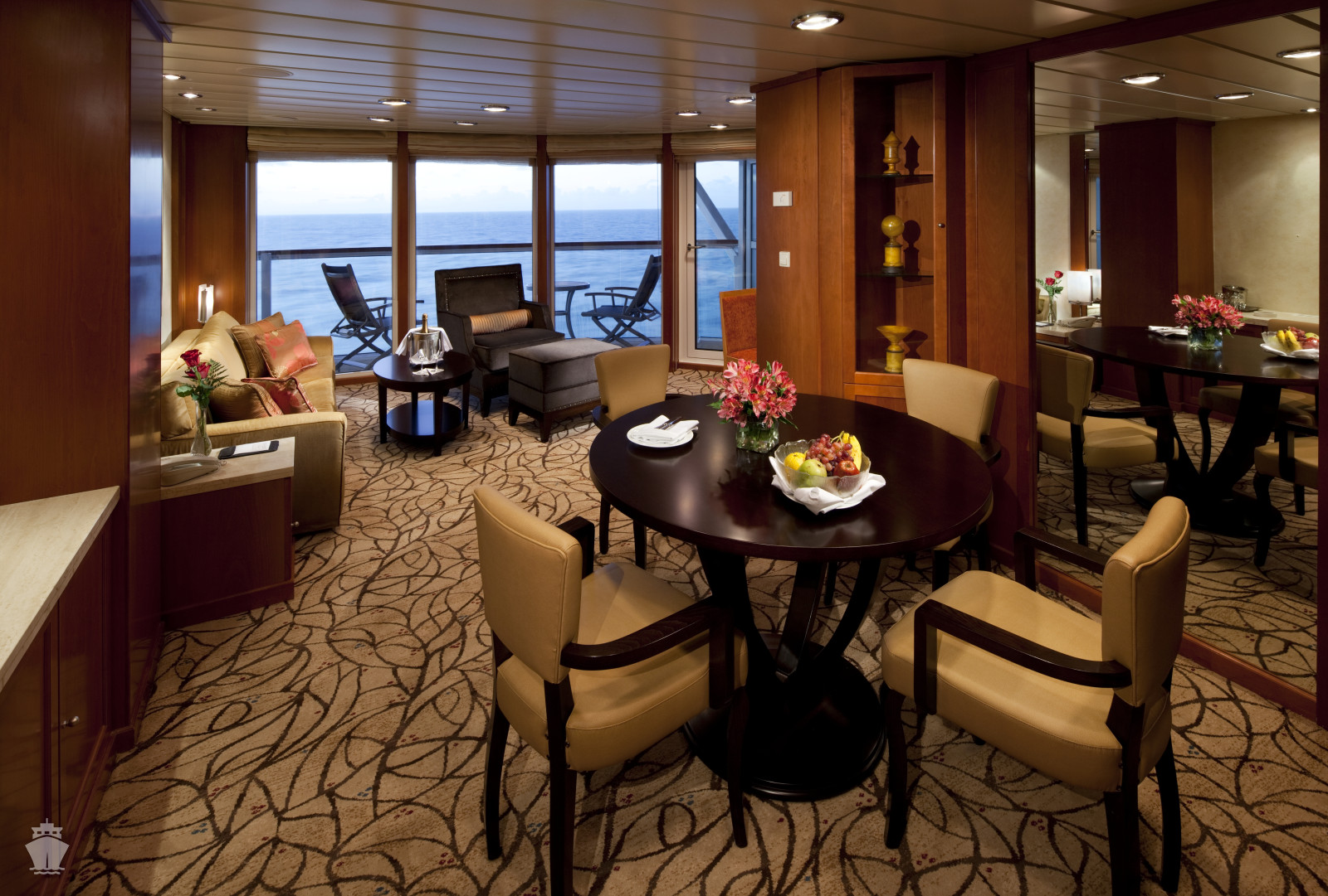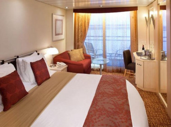 Základní vybavení všech kajut: koupelna s WC, fén, toaletní potřeby; lůžka, dostatek úložných prostor, toaletka se zrcadlem, individuálně nastavitelná klimatizace, TV, župany, trezor, minibar.