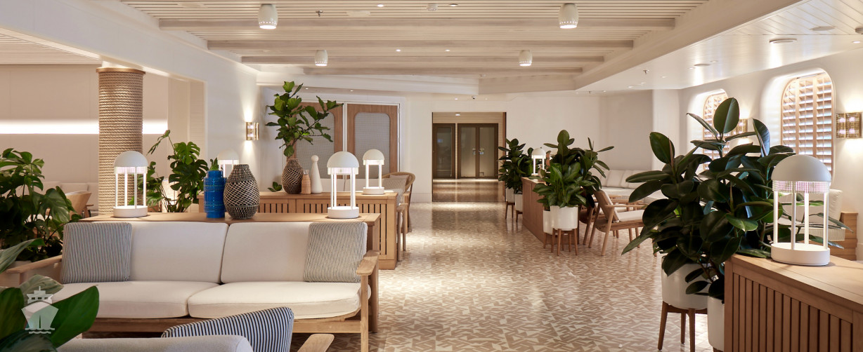 Moderně zařízené kajuty jsou eco-friendly, při zařizování byly použity přírodní a ekologické materiály.K hi-tech funkcím patří připojení na bezplatnou WiFi, automatický systém osvětlení, nastavitelná klimatizace, 4K HDTV televizory s plochou 43 palcovou obrazovkou a ovládacím tabletem, minibar. K dispozici je také 24 hodinová kajutová osobní služba.