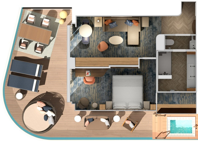 | HE - Kajuta Havana Cabana s patiom 26 m² / vnější patio 8 m². Tropický styl, vstup do exkluzivní zóny Havana. | 37 504 Kč 18 752 Kč za osobu |