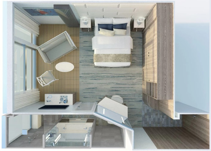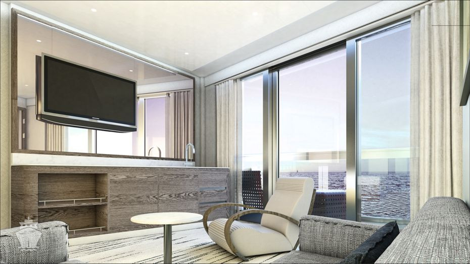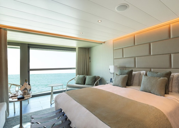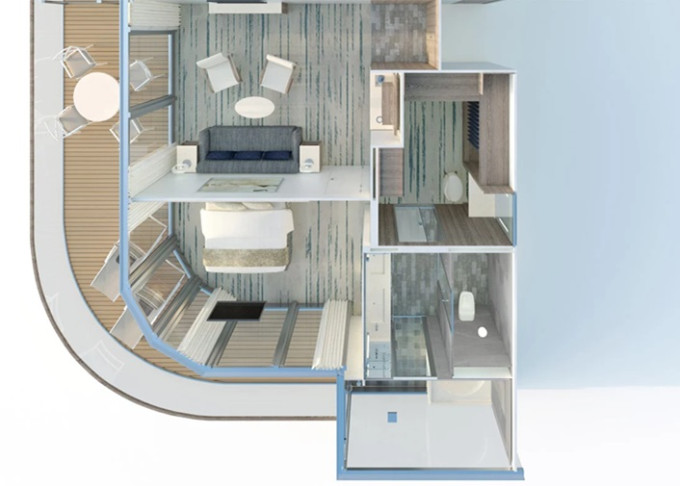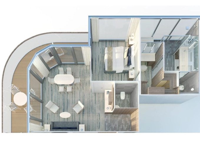 | R1 - Royal Suite 1 83 m² / veranda 28 m². Ložnice, oddělená obývací časť, koupelna s vířivkou a výhledem na moře. | 1 246 815 Kč 623 408 Kč za osobu |