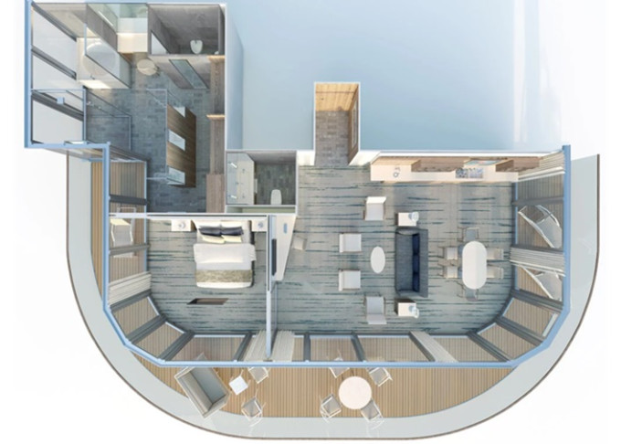 | O1 - Owner's Suite 1 160 m² / veranda 60 m². Ložnice, oddělená obývací část a jídelna, koupelna s vířivkou a výhledem na moře. | 1 850 273 Kč 925 137 Kč za osobu | ||