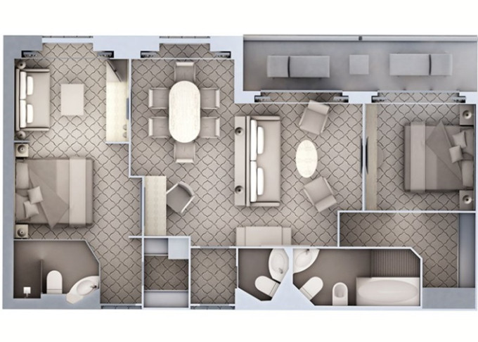 | G1 - Grand Suite 1 95 m² (včetně balkona). Obývacia časť s jedálňou, oddělená ložnice. | 2 169 458 Kč 2 169 458 Kč za osobu | ||