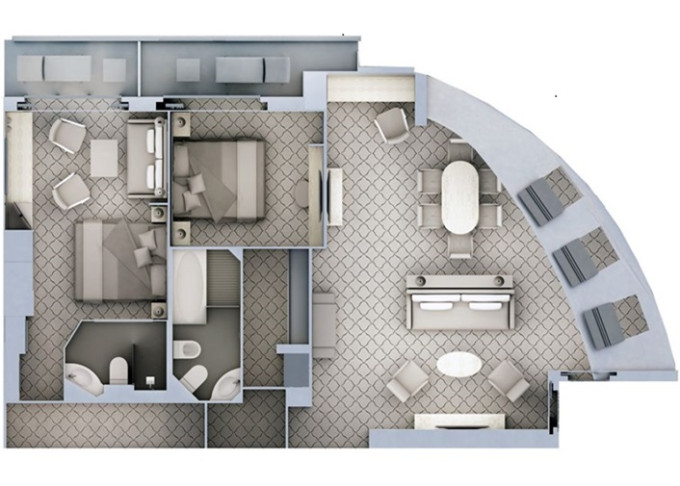 | G2 - Grand Suite 2 122 m² (včetně 2 balkonov). Grand Suite G1 spojená s Veranda Suite. | 3 141 974 Kč 3 141 974 Kč za osobu |