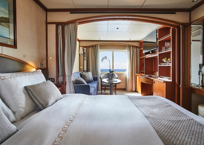 | VI - Vista Suite s oknem 22-30 m². Panoramatické neotevíratelné okno. Ložnice s oddělitelnou obývací částí. | 1 012 414 Kč 506 207 Kč za osobu | ||