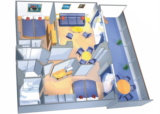 | GT - Grand Suite s balkonem / 2 ložnice 57 m² / balkon s vířivkou 22 m². Výhody Royal Suite Class. 8/9. paluba. Max 8 osob. | 289 261 Kč 72 315 Kč za osobu | ||