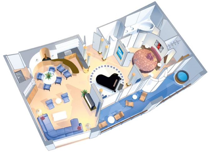 | OS - Owner’s Suite s balkonem 47 m² / balkon s vířivkou 6 m². Výhody Royal Suite Class. 10. paluba. Max 4 osoby. | 153 757 Kč 76 879 Kč za osobu | ||