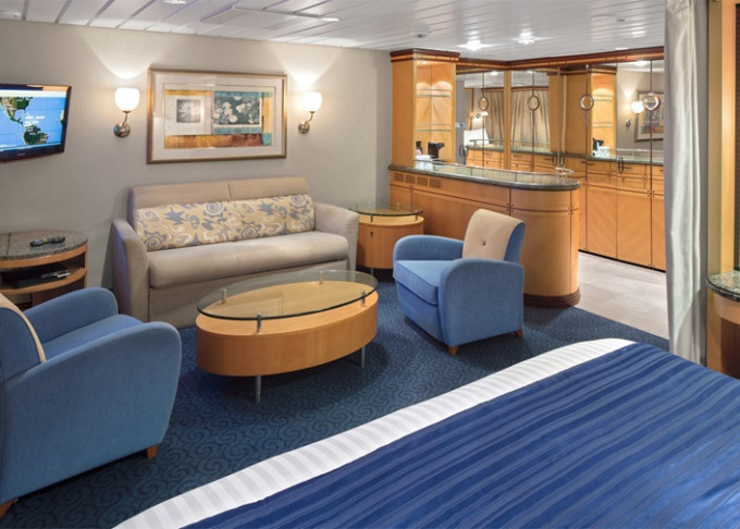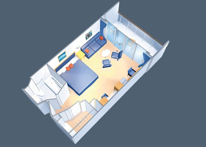 | VP - Ocean View Panoramic Suite (bez balkonu) 37 m². Panoramatické neotevíratelné okna. Výhody Royal Suite Class. 12. paluba. Max 6 osob. | 167 622 Kč 167 622 Kč za osobu |