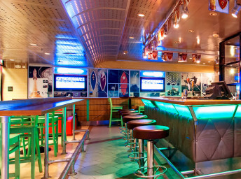 - "Peek-a-boo bridge" výhled na kapitánský můstek, kde máte jedinečnou příležitost nakouknout přes rameno kapitánovi a posádce při řízení lodi (celkem na přídi, 11. paluba)