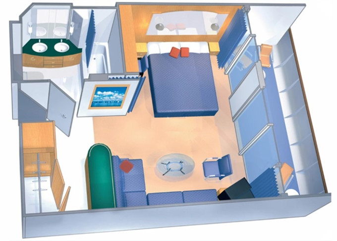 | VO - Ocean View Suite (bez balkonu) / 2 ložnice 44,5 m². Panoramatické neotevíratelné okna. Výhody Royal Suite Class. 8. paluba. Max 8 osob. | 108 199 Kč 108 199 Kč za osobu |