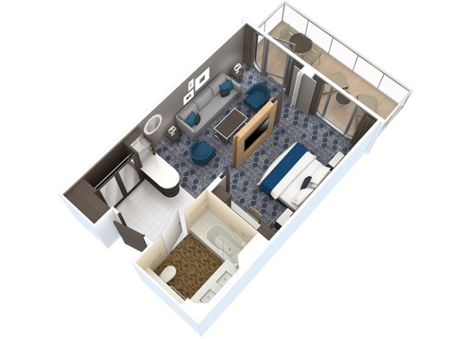 | J3 - Junior Suite s balkonem 27 m² / balkon 7 m². Výhody Royal Suite Class. 6/7/8/11/12/14. paluba. Max 5 osob. | 235 872 Kč 235 872 Kč za osobu | ||
