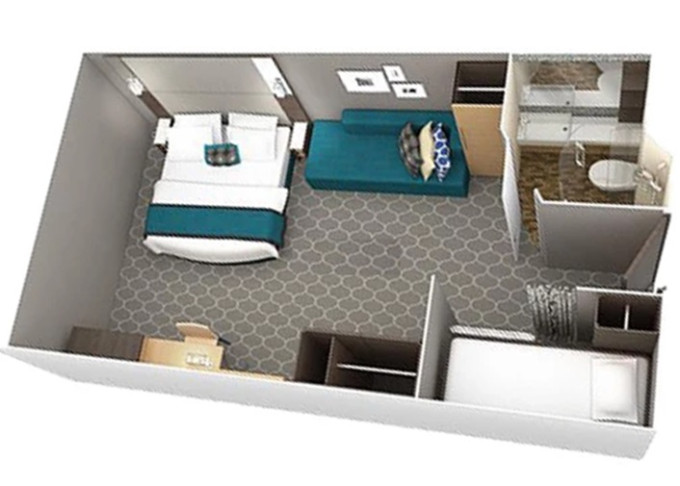 | 2T - Vnitřní kajuta Promenade View / s oknem 18 m². Neotevíratelné okno (výhled na Promenade). 7/11/12. paluba. Max 5 osob. | 58 900 Kč 29 450 Kč za osobu | ||