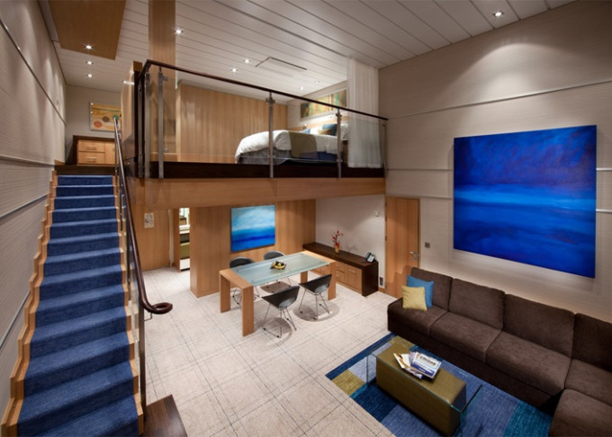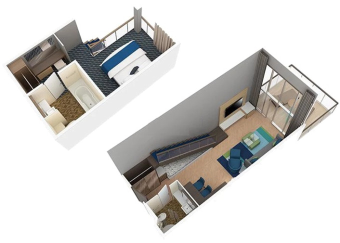 | L1 - Crown Loft Suite s balkonem 50 m² / balkon 10 m². 2-podlažní apartmán. Výhody Royal Suite Class. 17. paluba. Max 4 osoby. | 271 706 Kč 135 853 Kč za osobu |