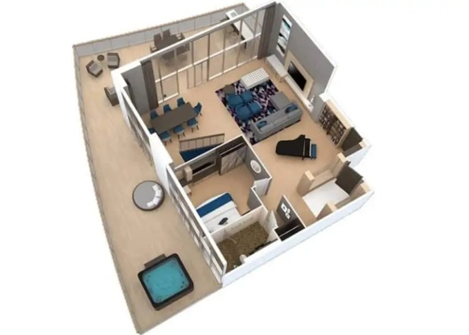 | RL - Royal Loft Suite s balkonem 141 m² / balkon s vířivkou 78 m². 2-podlažní apartmán. Výhody Royal Suite Class. 17. paluba. Max 6 osob. | 656 897 Kč 656 897 Kč za osobu |