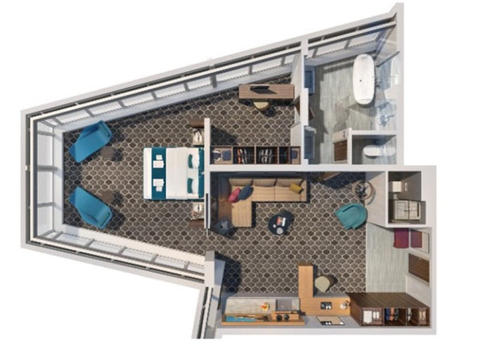 | TL - Star Loft Suite 67 m² / balkon 38 m². 2-podlažní apartmán. Výhody Royal Suite Class. 17. paluba. Max 4 osoby. | 568 947 Kč 284 473 Kč za osobu | ||