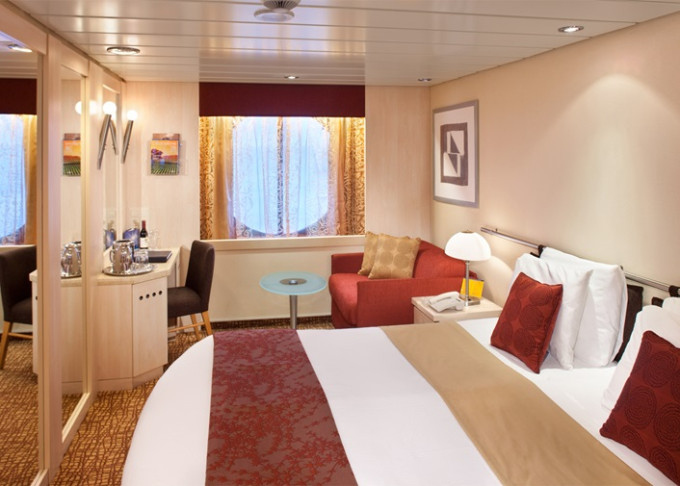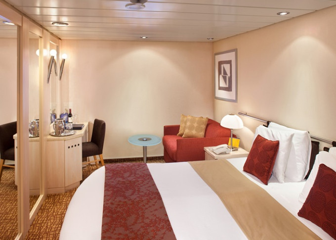 Základní vybavení všech kajut: koupelna s WC, fén, toaletní potřeby; lůžka, dostatek úložných prostor, toaletka se zrcadlem, individuálně nastavitelná klimatizace, TV, župany, trezor, minibar.