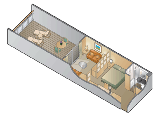 - kajuty umístěné v blízkosti Spa areálu s luxusním vybavením (exkluzivní ložní prádlo, posílená vzdušná filtrace, velkorysé úložné prostory aj.)