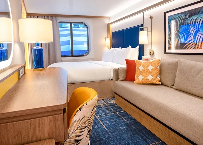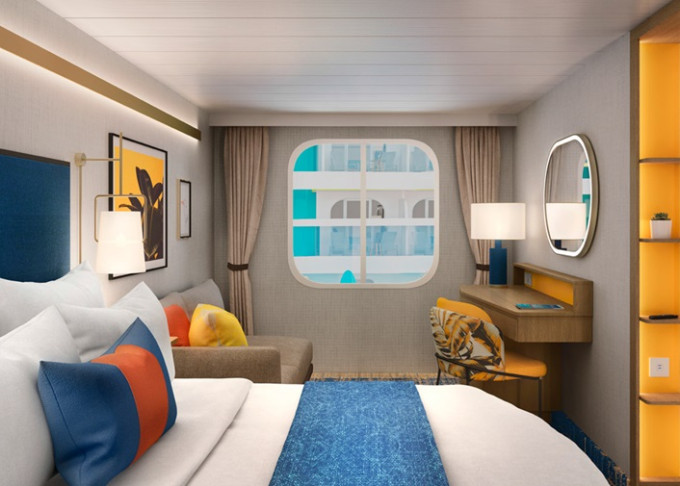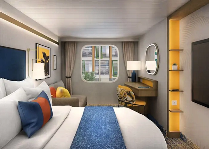 | T5 - Vnitřní kajuta s oknem / Surfside Family 17 m². Neotevíratelné okno s výhledem na čtvrť Surfside. 8. paluba vpředu. Max 4 osoby. | 111 615 Kč 27 904 Kč za osobu |