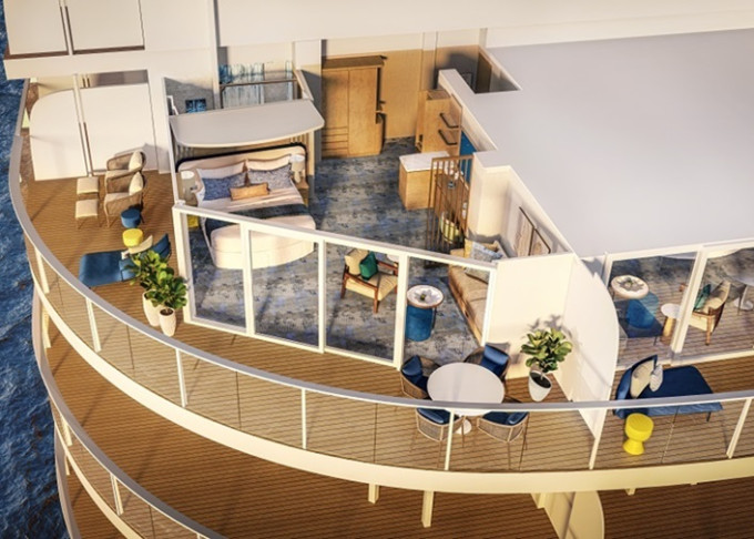 | I1 - Kajuta Infinite Ocean View 23 m² (včetně 4,5 m² verandy Infinite s výhledem na moře). 9,10,11. paluba. Max 4 osoby. | 139 893 Kč 46 631 Kč za osobu | ||