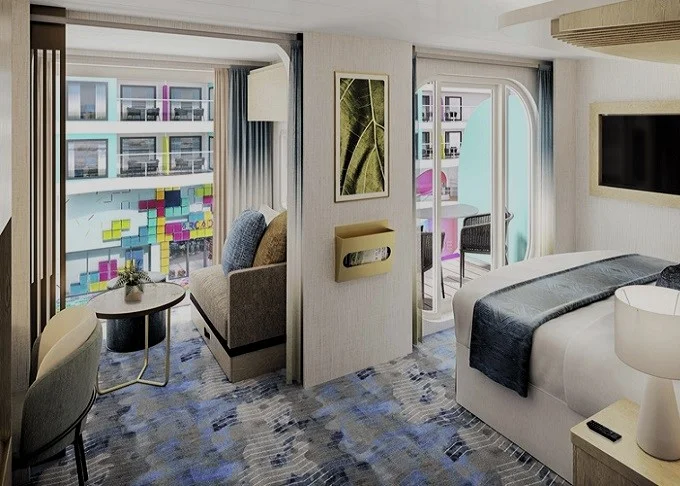 - Kajuty s balkónem jsou oázou soukromí s výhledy na moře či do vnitřního atria lodi.