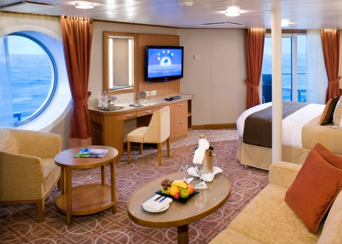 Základní vybavení všech kajut: koupelna s WC, fén, toaletní potřeby; lůžka, dostatek úložných prostor, toaletka se zrcadlem, individuálně nastavitelná klimatizace, TV, župany, trezor, minibar.