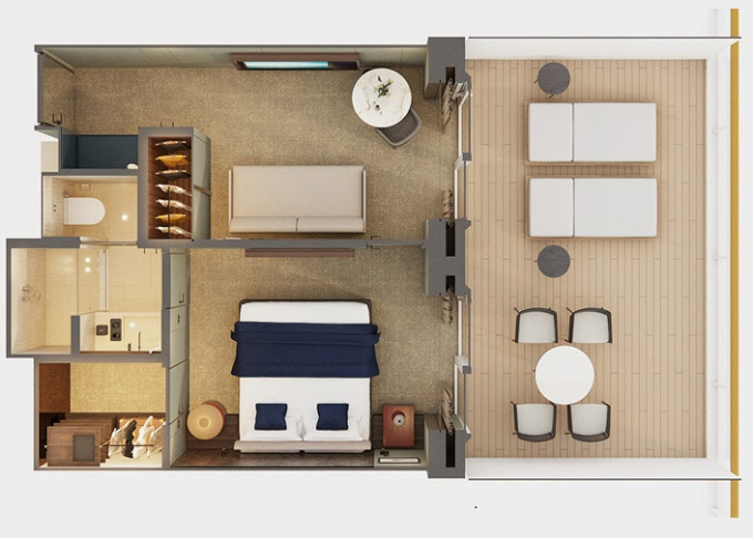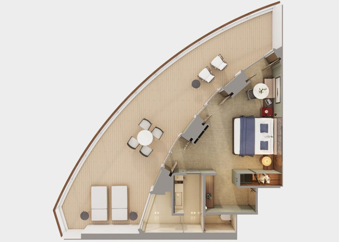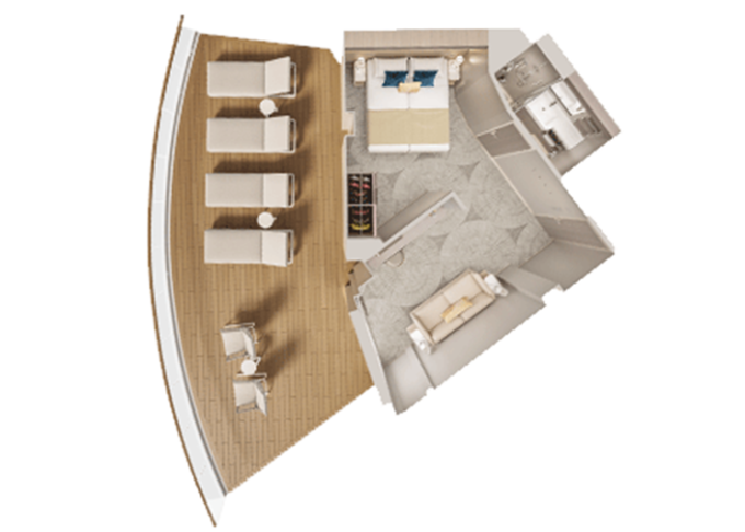 | H5 - Suite The Haven Owner's 50-57 m² / balkón 10-12 m². Výhody The Haven. 12. paluba - střed, vzadu. Max 4 osoby. | 179 342 Kč 89 671 Kč za osobu |