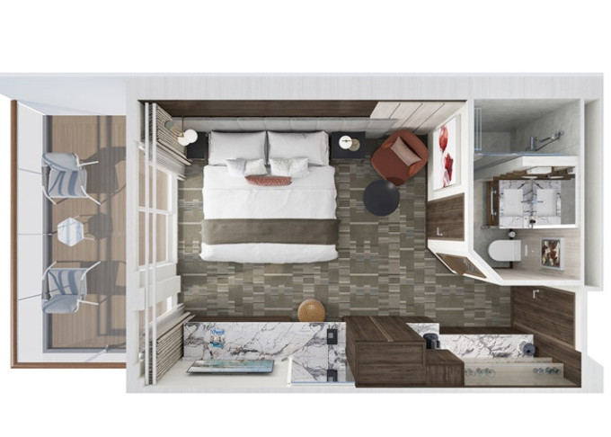 | B1 - Kajuta s balkonem Aft-facing 19-29 m² / balkon 5-8 m². 8. až 13. paluba. Max 2-3 osoby. | 51 070 Kč 25 535 Kč za osobu | ||