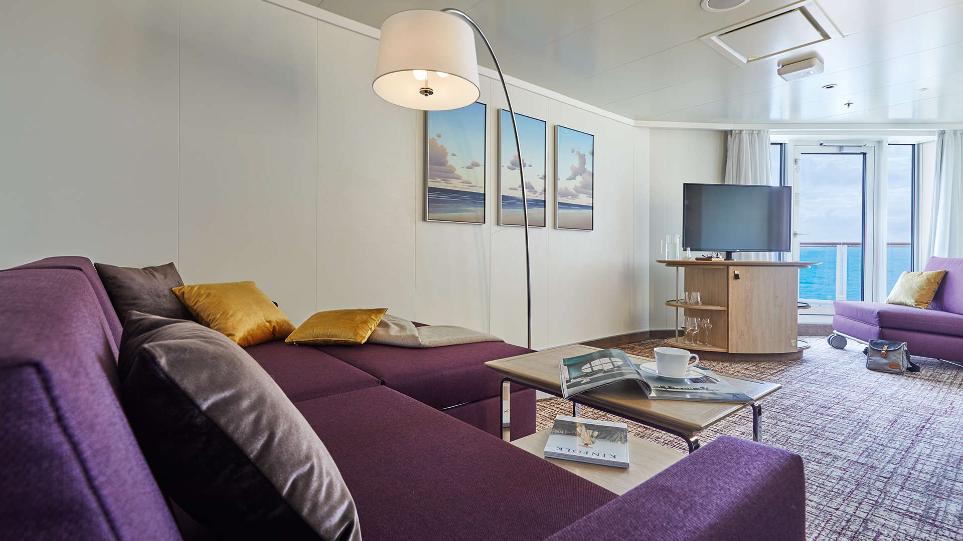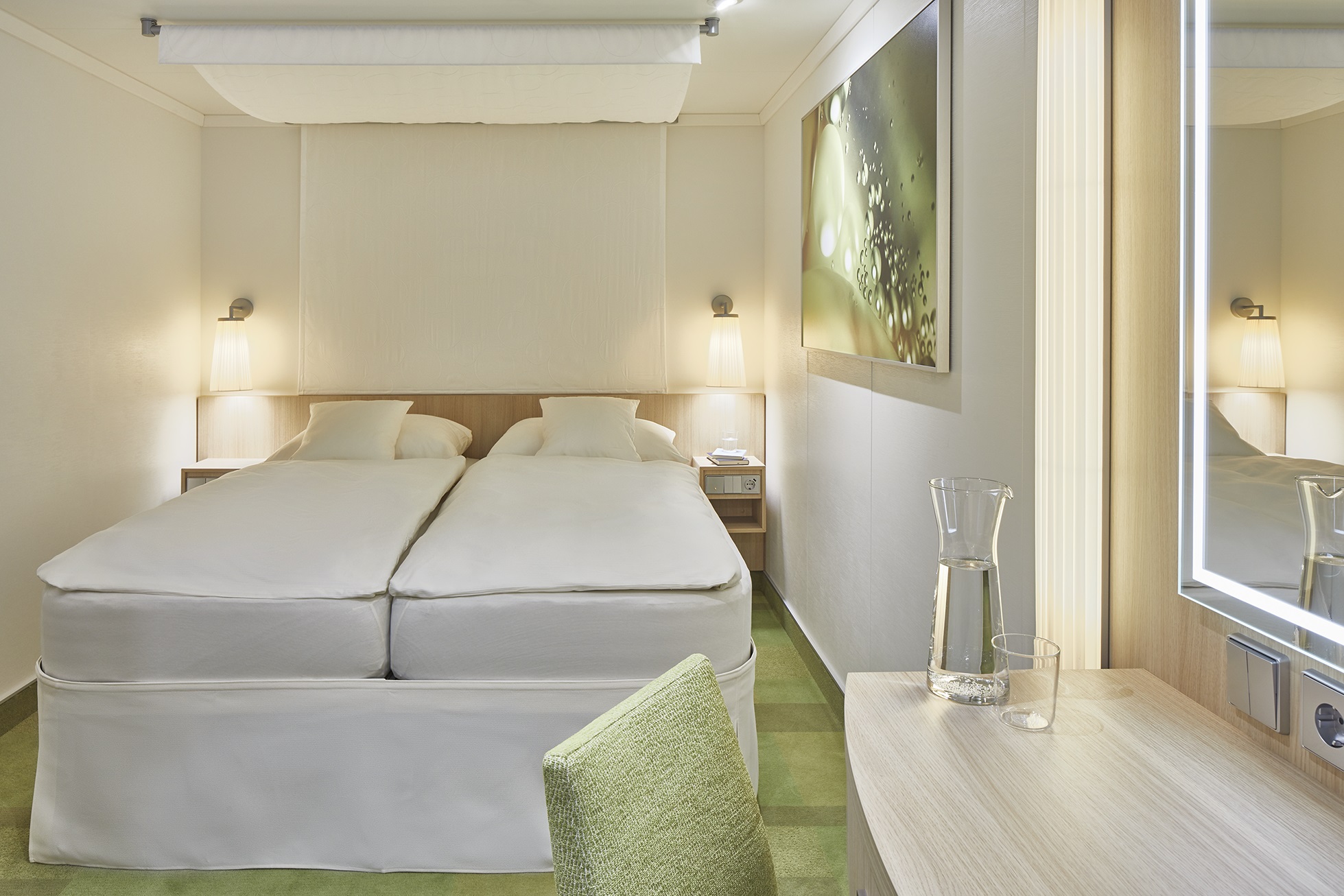 Ve všech kajutách se nachází koupelna se sprchou, 2 pevná lůžka a v některých kajutách též 2 přistýlky ve formě sklopných lůžek či rozkládacího sofa, úložné prostory, trezor, vysoušeč vlasů, telefon, TV, regulovatelná klimatizace.
