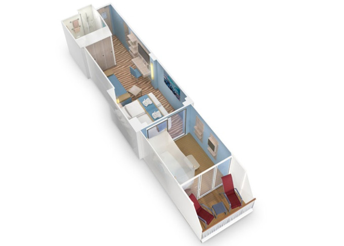 | VC - Kajuta s verandou Komfort PREMIUM od 17 m²/ lounge 7 m²/ balkon od 4,5 m². Cenový model Premium. Max 4 osoby. | 45 384 Kč 22 692 Kč za osobu |