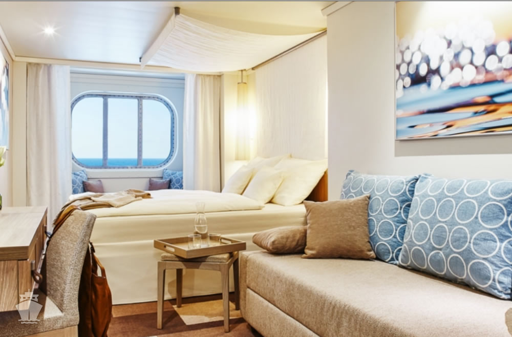 Ve všech kajutách se nachází koupelna se sprchou, 2 pevná lůžka a v některých kajutách též 2 přistýlky ve formě sklopných lůžek či rozkládacího sofa, úložné prostory, trezor, vysoušeč vlasů, telefon, TV, regulovatelná klimatizace.