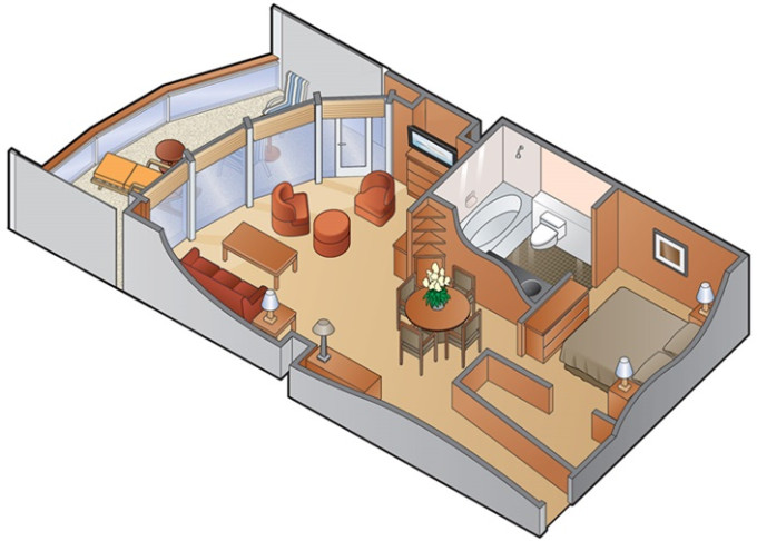 | RS - Royal Suite 52 m² + balkon s vířivkou 18 m² . Koupelna s vířivkou. 6. paluba. Max 3 osoby. Výhody Suite. | 604 606 Kč 604 606 Kč za osobu |