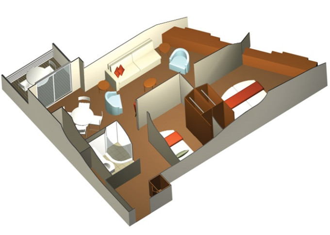 | SS - Sky Suite Sunset 28 m² / balkon 7 m². 6. až 12. paluba. Max 4 osoby. Výhody Suite. | 321 229 Kč 321 229 Kč za osobu |