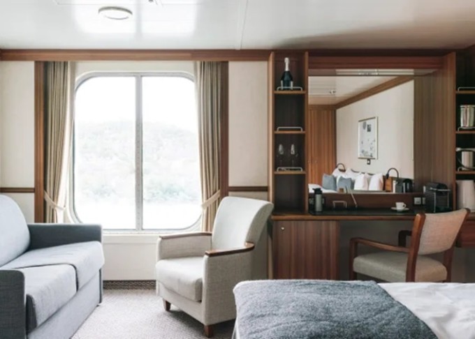 | Q2 - Expedition Mini Suite 15-20 m². Neotevíratelné okno. Obývací část, TV and mini-bar | 1 235 743 Kč 617 872 Kč za osobu | ||