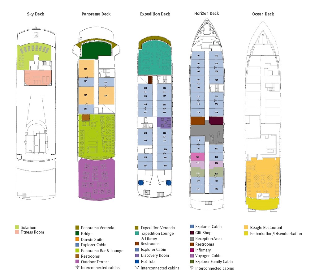 Seznamte se s lodí do detailu a získejte přehled o všech palubách a jejich vybavení na lodi.