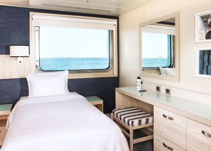 | EE - Kajuta s oknem Explorer 15 m². Neotevíratelné okno. Expedition deck. Max 2 osoby | 338 186 Kč 169 093 Kč za osobu | ||