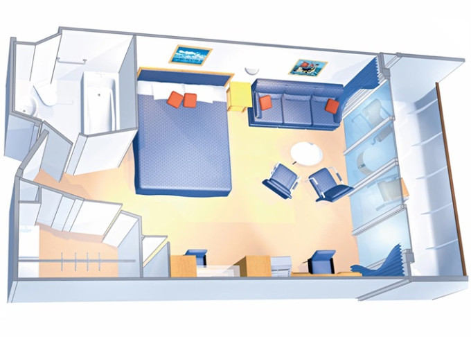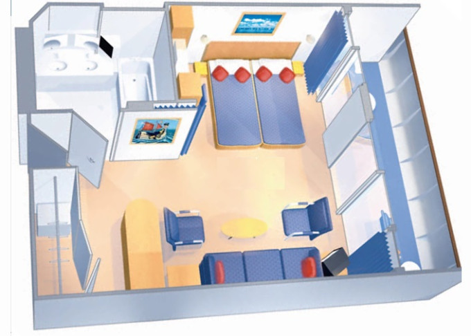 | 1K - Velká vnější kajuta Ultra Spacious 24,5 m². Neotevíratelné okno. 7/8. paluba. Max. 6 osob. | 75 732 Kč 75 732 Kč za osobu | ||
