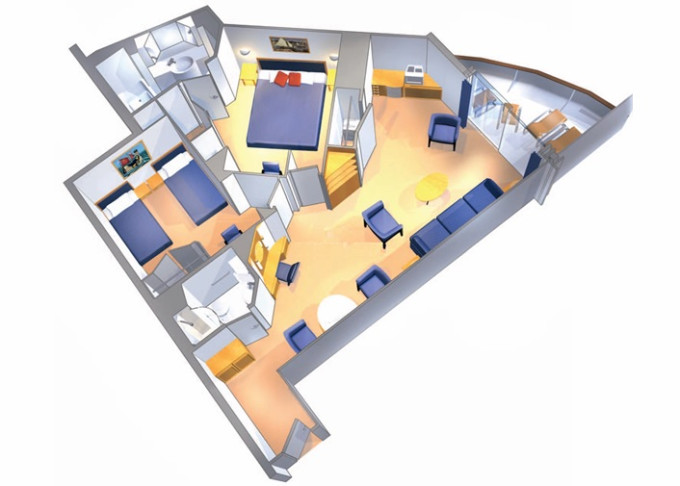 | OS - Owner’s Suite s balkonem 49 m² / balkon 5 m². Výhody Royal Suite Class. 10. paluba. Max 4 osoby. | 119 096 Kč 59 548 Kč za osobu | ||