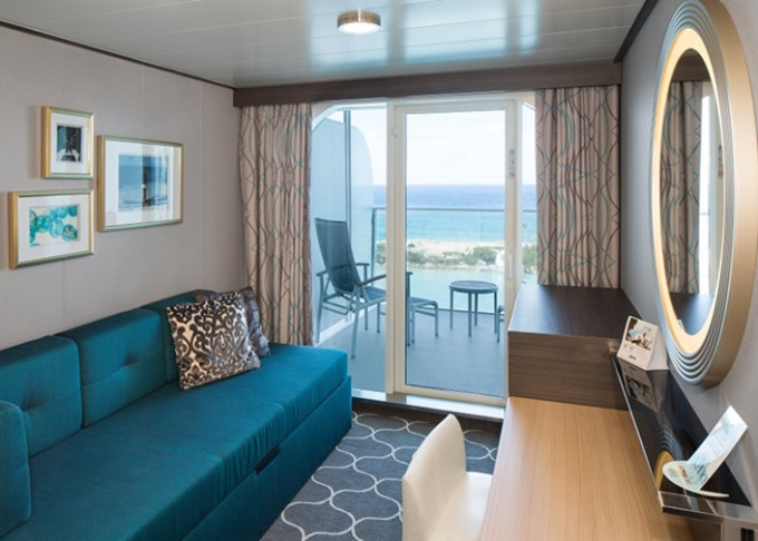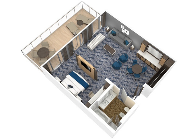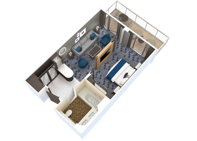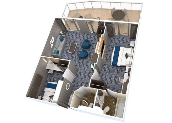 | J4 - Junior Suite s balkonem 26,5 m² / balkon 7,5 m². Výhody Royal Suite Class. 6. až 14. paluba. Max 5 osob. | 222 133 Kč 222 133 Kč za osobu | ||