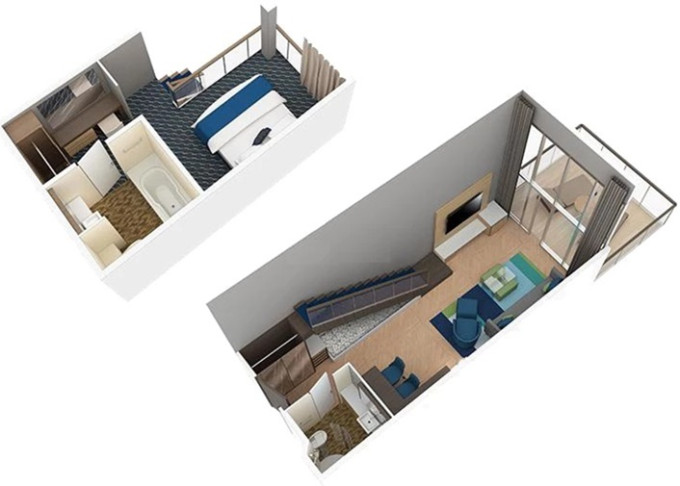 | L1 - Crown Loft Suite s balkonem 50 m² / balkon 10 m². 2-podlažní apartmán. Výhody Royal Suite Class. 17. paluba. Max 4 osoby. | 282 927 Kč 141 464 Kč za osobu | ||