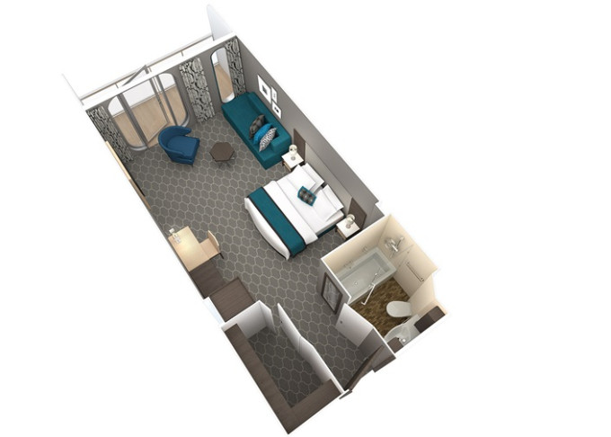 | 2T - Vnitřní kajuta Promenade View / s oknem 18 m². Neotevíratelné okno (výhled na Promenade). 7. paluba. Max 4 osoby. | 116 602 Kč 29 151 Kč za osobu | ||