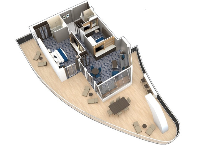 | A1 - Spacious AquaTheater Suite s balkonem / 2 ložnice 76 m² / balkon 72 m². Výhody Royal Suite Class. 8. paluba. Max 8 osob. | 789 309 Kč 789 309 Kč za osobu |