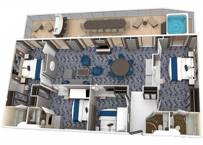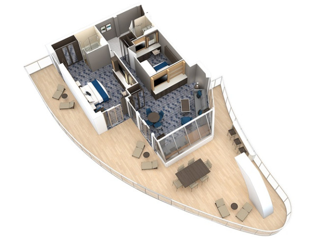 | A2 - Spacious AquaTheater Suite s balkonem / 2 ložnice 62,5 m² / balkon 56 m². Výhody Royal Suite Class. 9/10. paluba. Max 8 osob. | 673 654 Kč 673 654 Kč za osobu |