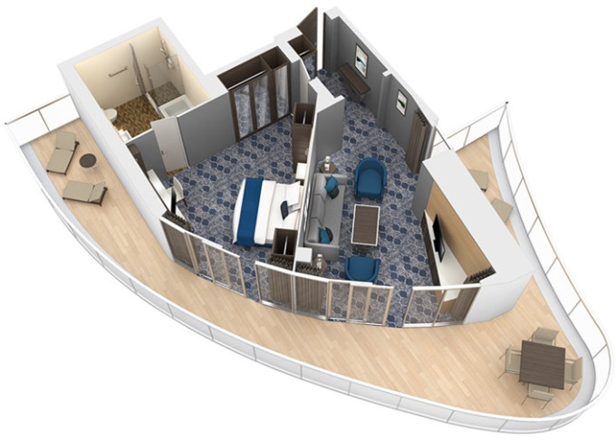 | OS - Owner’s Suite s balkonem 51,5 m² / balkon 22 m². Výhody Royal Suite Class. 10. až 14. paluba. Max 4 osoby. | 336 840 Kč 168 420 Kč za osobu |