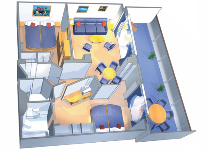 | VP - Ocean View Panoramic Suite (bez balkonu) 37 m². Panoramatické neotevíratelné okna. Výhody Royal Suite Class. 12. paluba. Max 6 osob. | 90 294 Kč 30 098 Kč za osobu |